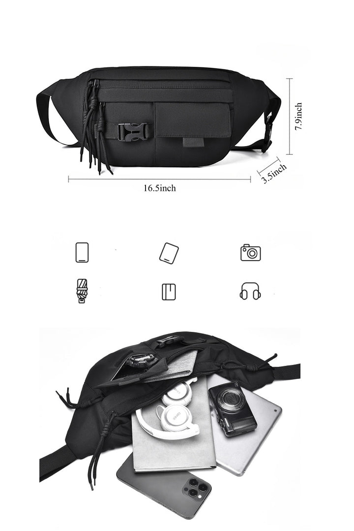 Urban Fanny Pack Water Resistant Belt Bag Multi Compartment Hip Pack
