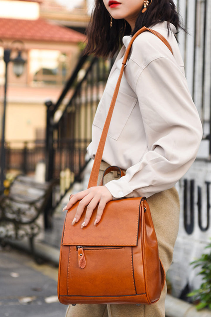 Vintage Style Mini Leather Backpack for Women - Classic Flap & EDC Ready